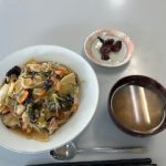 続きを読む »10/17 〇中華丼(豚肉・白菜・人参・筍・椎茸 ・きくらげ・小松菜) 漬物 味噌汁(里芋・ねぎ・油揚げ) 金曜日は丼の日! 今週は野菜たっぷりの中華丼です。 リヴェールで採れた新鮮な白菜とねぎを ふんだん […]