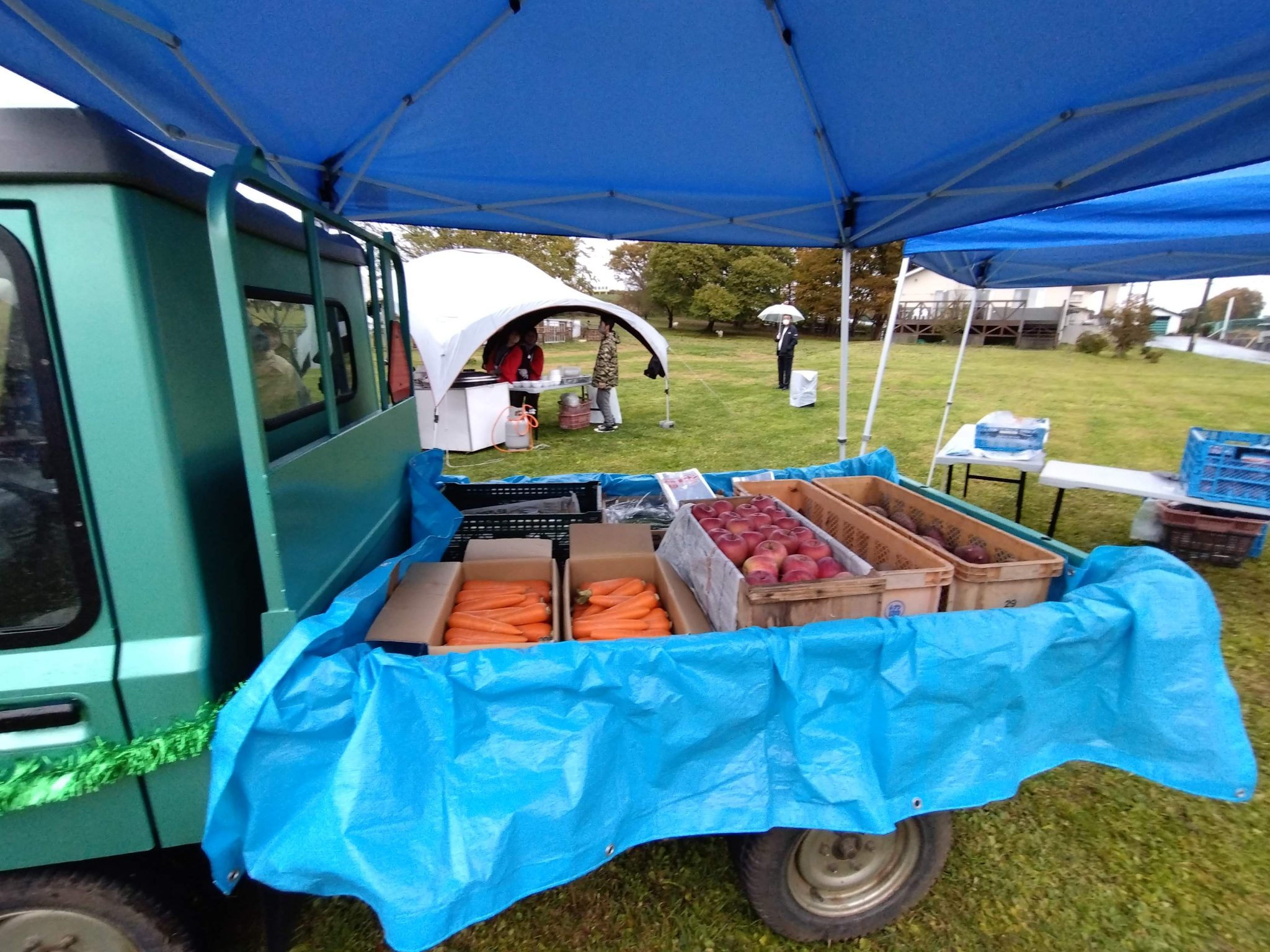野菜詰め放題では、たまねぎやにんじん、りんご