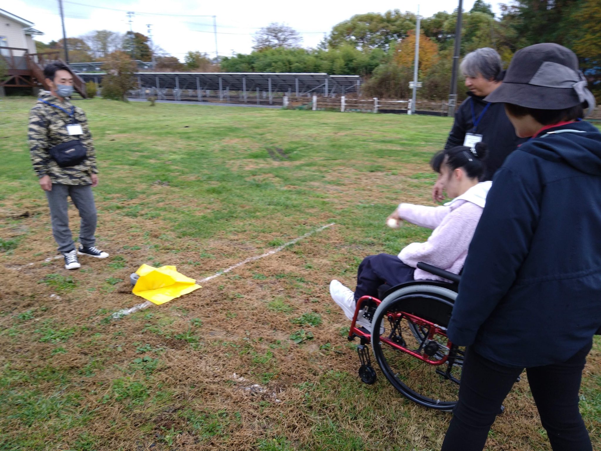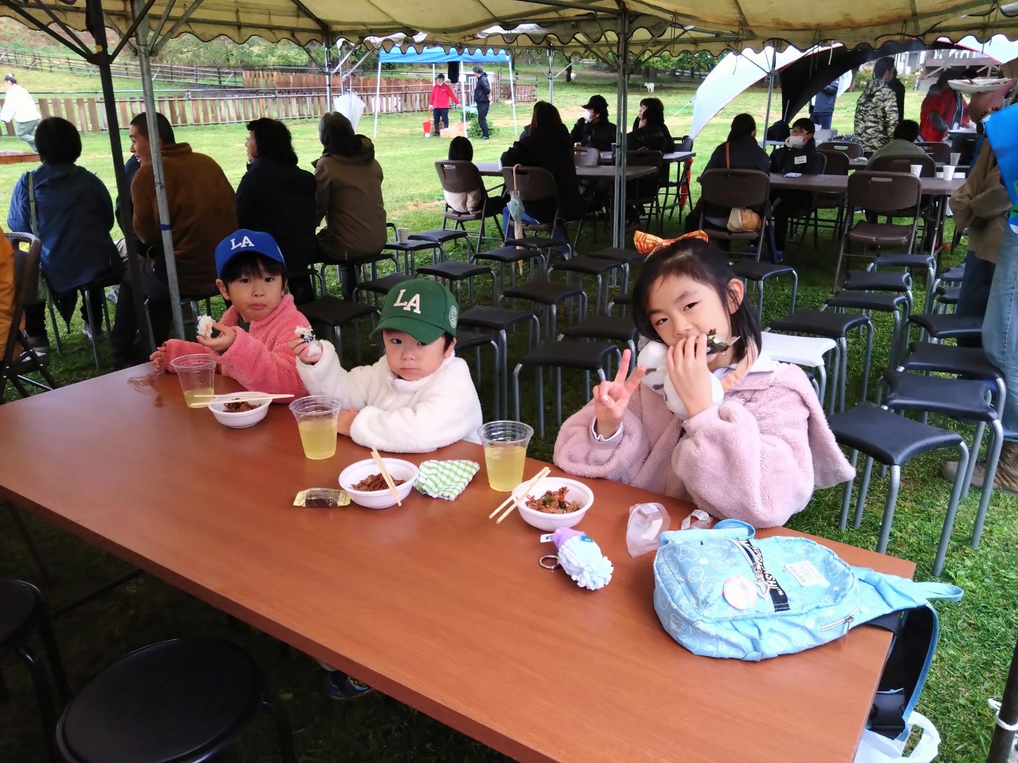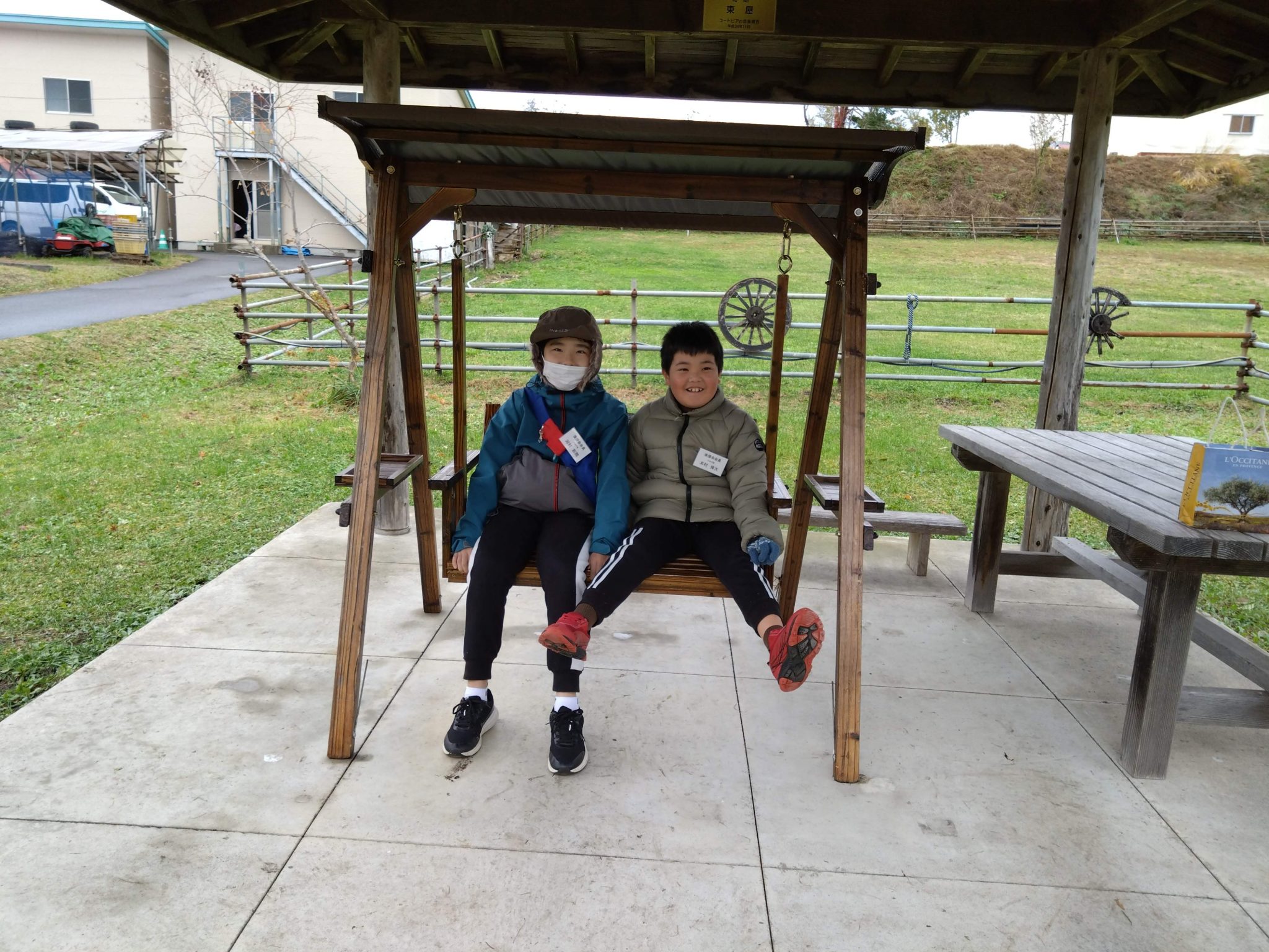 寄付していただいた運搬車やブランコ、ベンチの御披露目もできました。