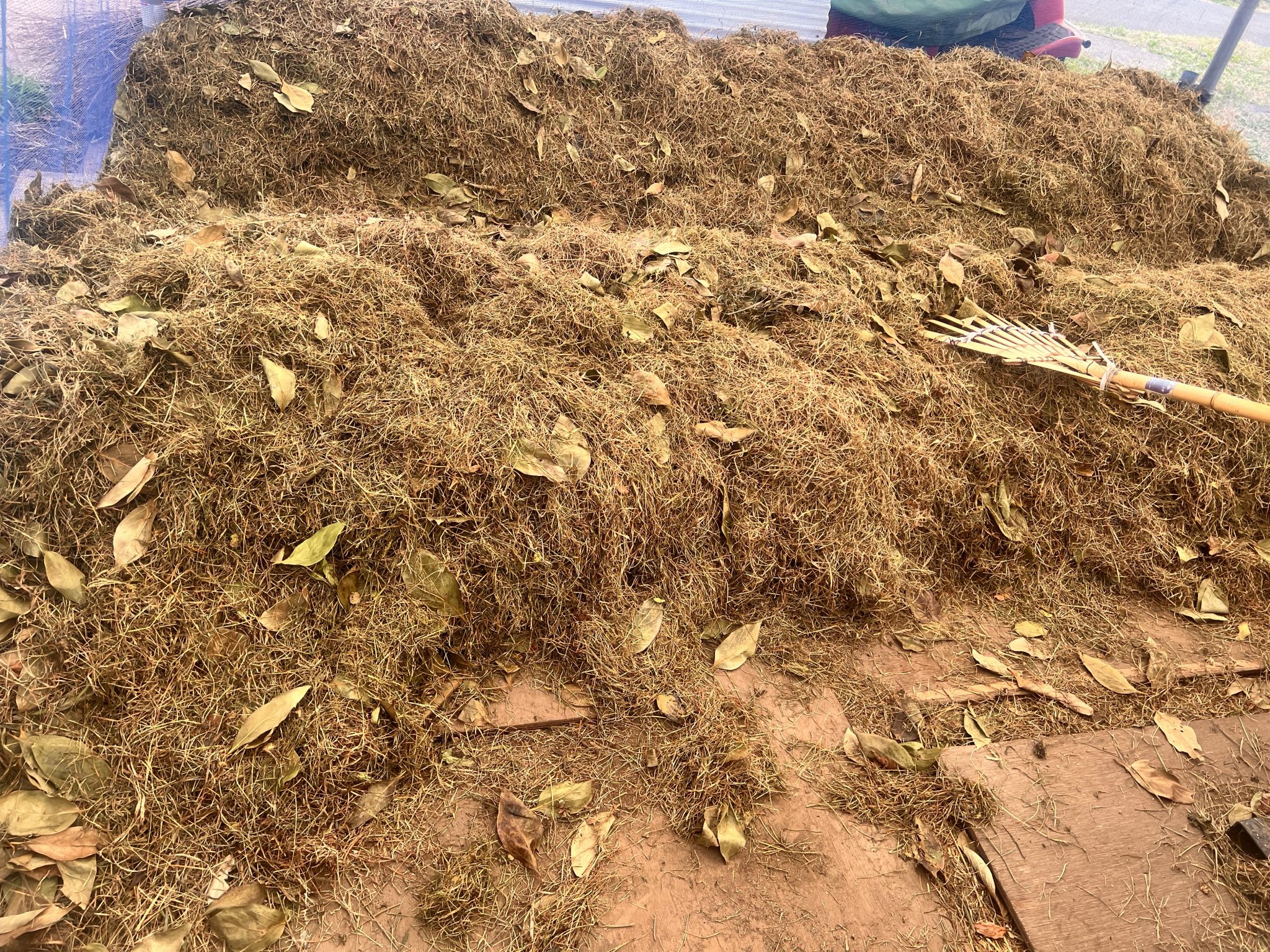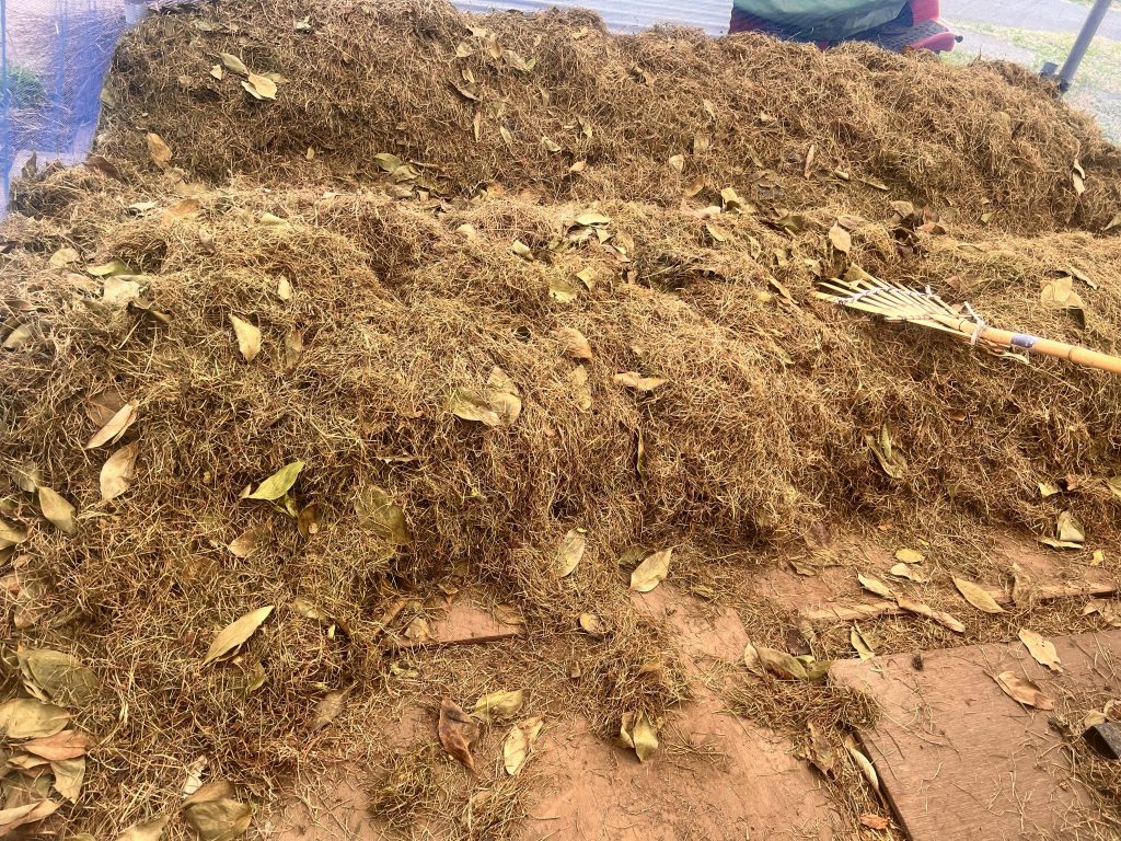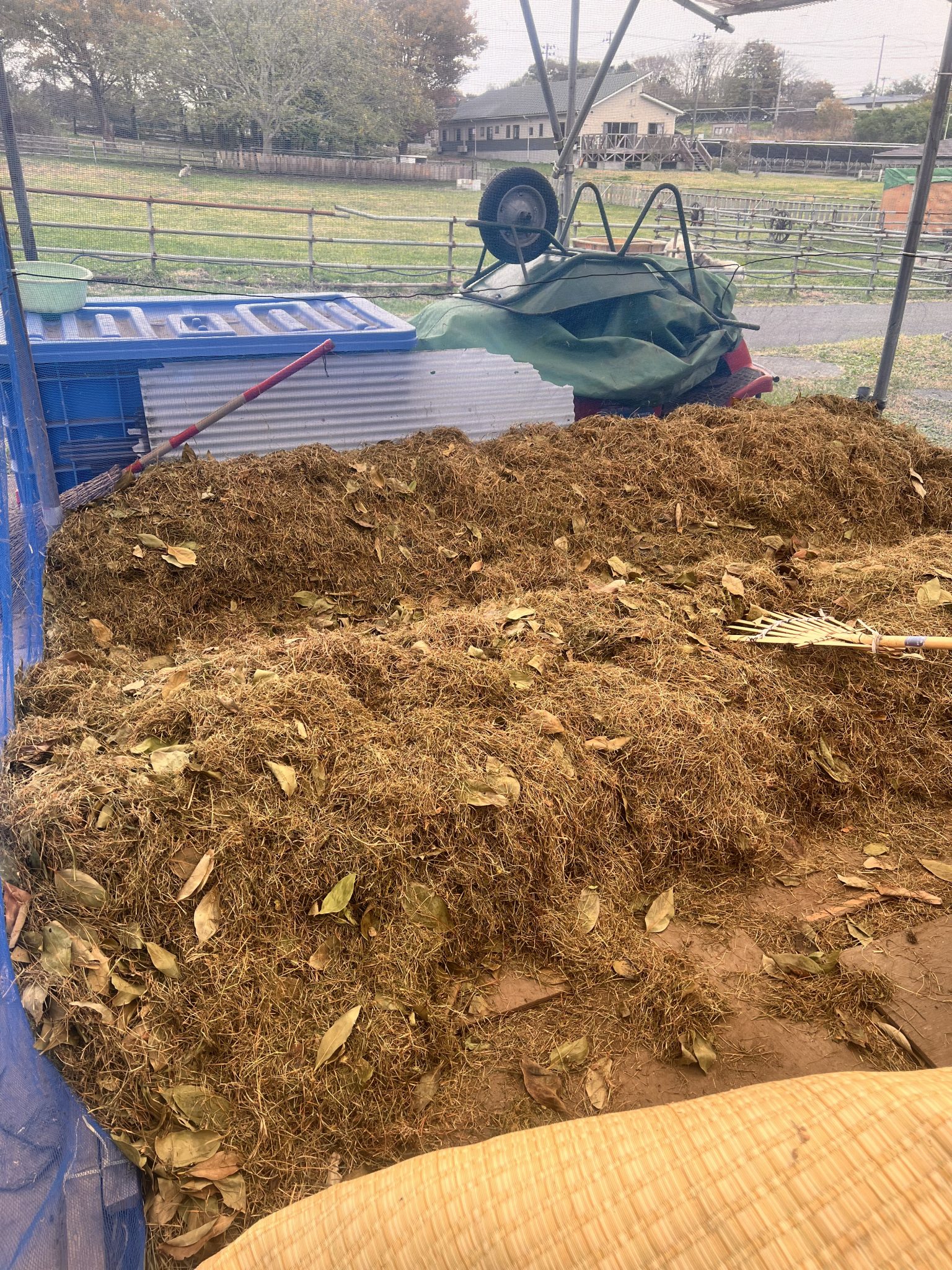 毎年牧草を買っていますが、数年前から冬期に向けまきばの整備で刈った物を実験的に干し草として作成していました。刈った草も天候によって乾燥度合いがかなり左右されるため、うまくいかないことも多々ありました。湿気ですぐに腐るので雨はよろしくないですね。
