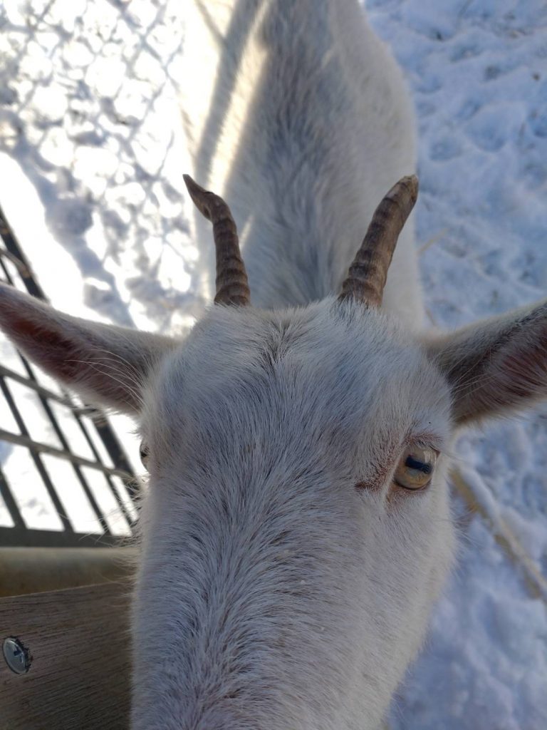 あかねちゃんは生まれて半年しないあたり、遊んでいて角を金網に引っ掛け片方の角がもげるというびっくりエピソードの持ち主です。ヤギの角は構造的には骨と同じだそうで、、、神経も血管も走っているので激痛だそうです。