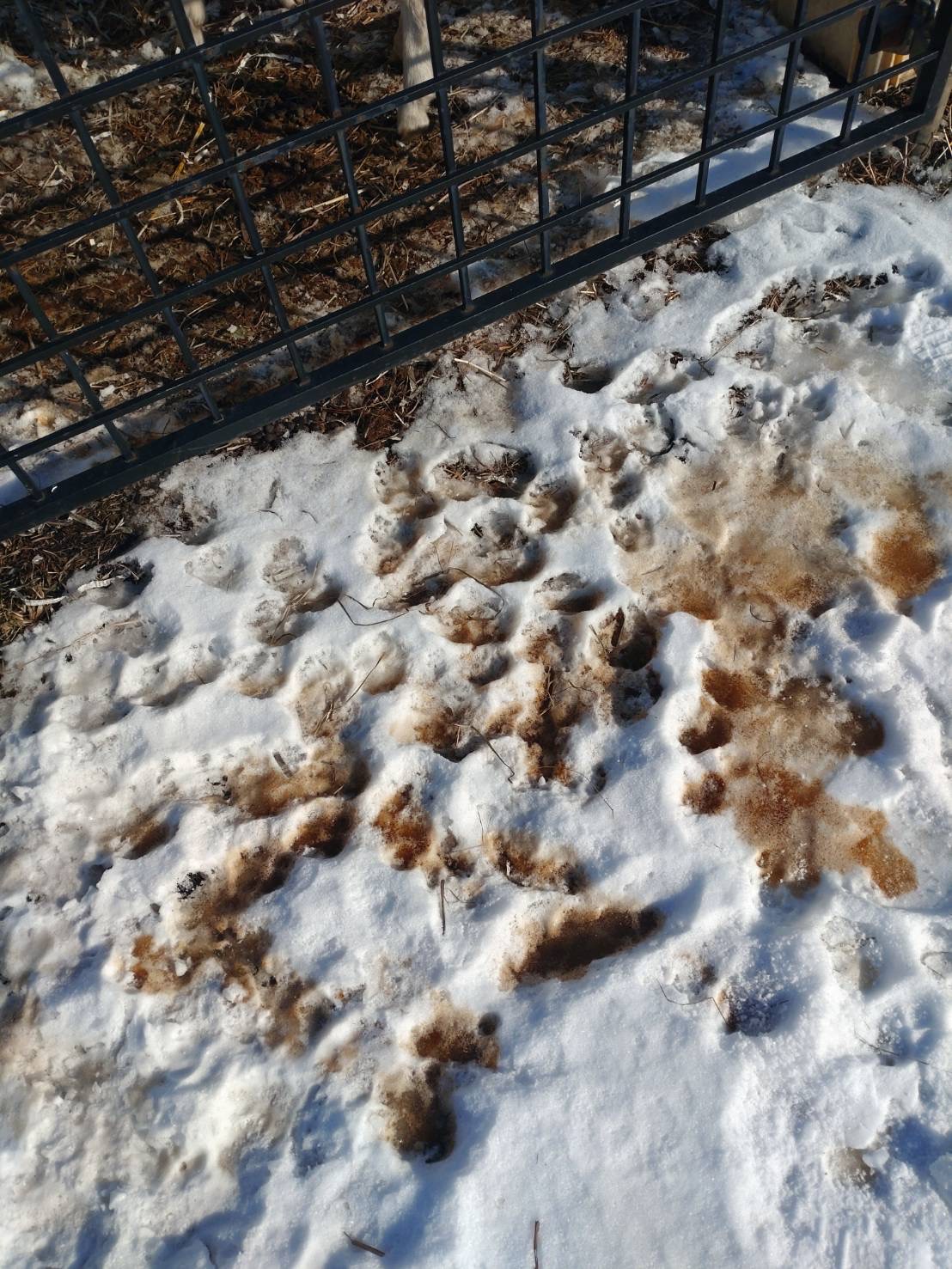 「足」関連で・・・少し前ですがメス山羊側の柵の前に謎の足跡が沢山残っているのを見つけました。