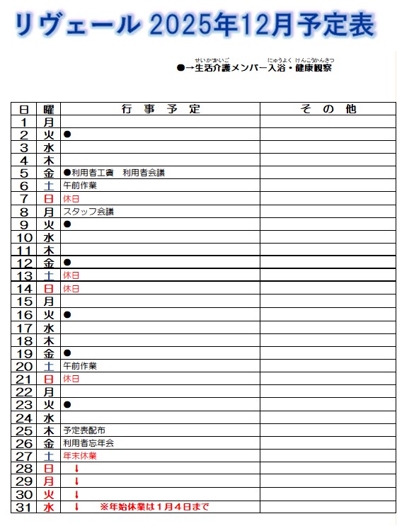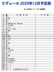リヴェール予定表12月