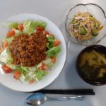 11/26 〇タコライス(ひき肉・玉ねぎ・チーズ・トマト・ レタス) 春雨サラダ(きゅうり・ハム・卵・春雨) 味噌汁(わかめ・油揚げ・ねぎ) 春雨はデンプン質が主成分で脂質が少なく、 野菜中心の具材と組み合わせる為、 比 […]