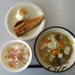 11/27 〇ホッケ焼き(大根おろし添え) 豚汁(豚肉・人参・大根・牛蒡・キャベツ・ ネギ・こんにゃく・里芋・しめじ・高野豆腐) ご飯 ホッケ焼きは油がのっていて、骨も少なく 利用者さんでも上手に食べています。 豚汁は1 […]