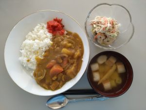 3月24日(火) 〇カレーライス(豚肉・人参・玉ねぎ・じゃが芋・豚肉) ゴボウサラダ(キャベツ・ちくわ) 味噌汁(おつゆ麩・ネギ・油揚げ) 子供から大人まで人気の定番カレーライスです。 ゴボウ […]