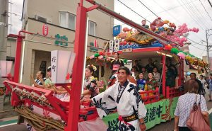 一風変わっています。山車の上で踊れるスペースを確保していて