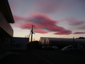 写真に写っているのは、9月18日の17時半過ぎの美保野の本部横で撮影した夕焼雲です。