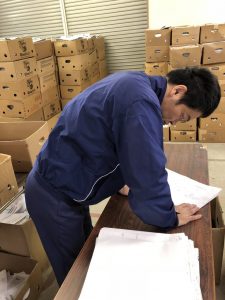 主に、本人の作業はカレンダーや大きな模造紙を折る作業を行っています。