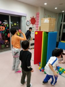 1分の練習タイムをしてから、30秒の本番です。みんな真剣にかごに(段ボール)向かってボールを放るのですが、落ちたボールが転がって行ってしまうのでボールを拾う方に苦戦しているようでした😁
