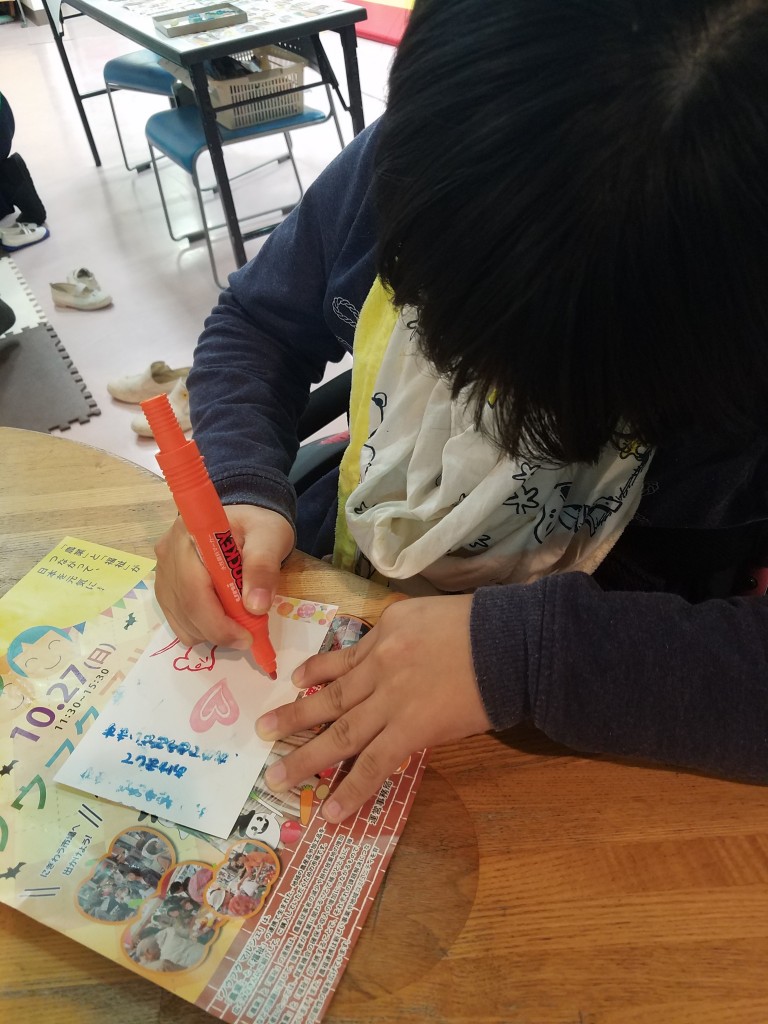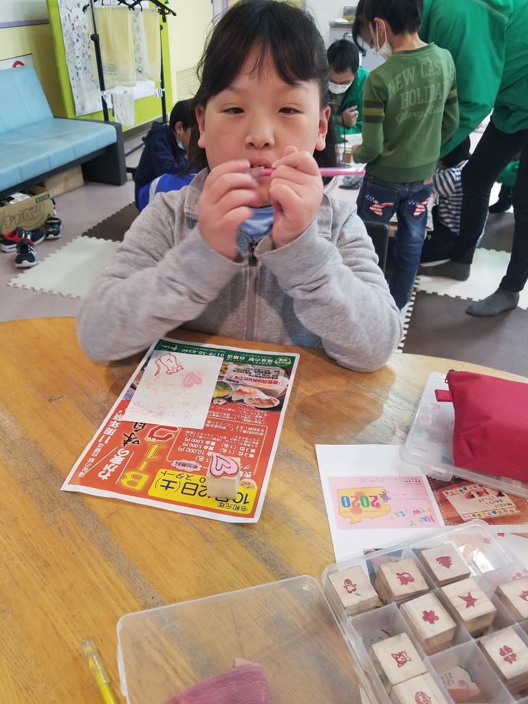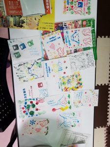 ひらがなを書くのはちょっとまだ難しい子も多いので、スタンプや消ゴム判子を使ってデザインしてもらいました🎵