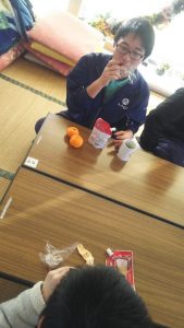 青果市場からいただいたジュースとみかんも一緒に。ごちそうさまでした🎵