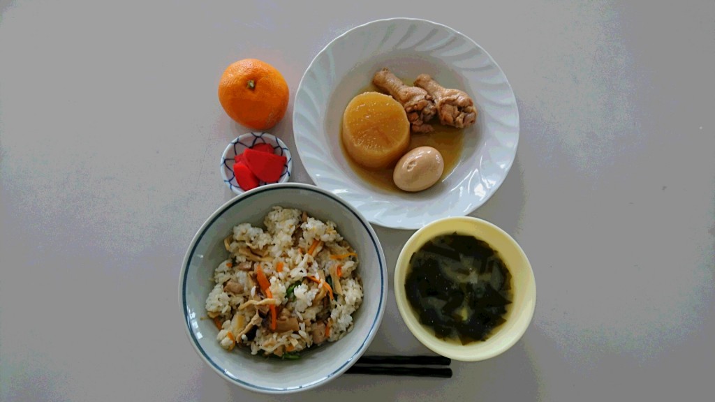 ○五目ご飯(鶏肉・椎茸・糸こんにゃく・人参・ごぼう・筍・レンコン)