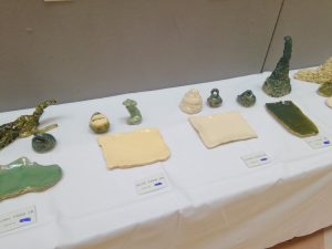 会場にいらした担当の先生にお話を伺ったところ、学校に窯があるので、その窯を利用して中等部の生徒が作品をつくっているそうです。