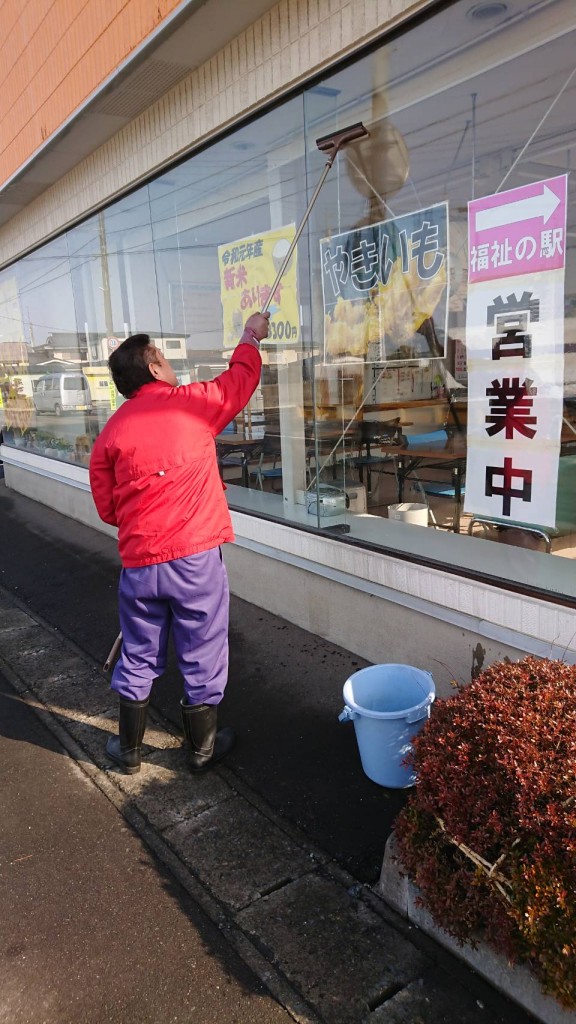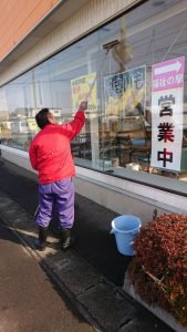 今日はジョイフルの道路側の大窓の汚れが目立っていたので