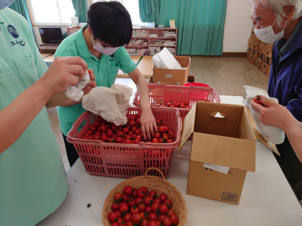 さて、ユートピアのハウス栽培には欠かせないミニトマト。いよいよ収穫が始まりました。