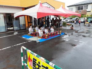雨が少し強くなってきたので、車の中でお囃子を堪能しました。