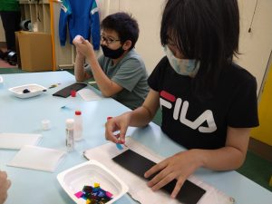 貼っている子もいて、「穴開いてないと色が見えないよ」と指摘されていました(^-^)