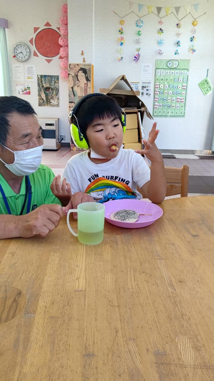 この後Aくんは「よしよし、よぐたべだなぁ~」と