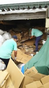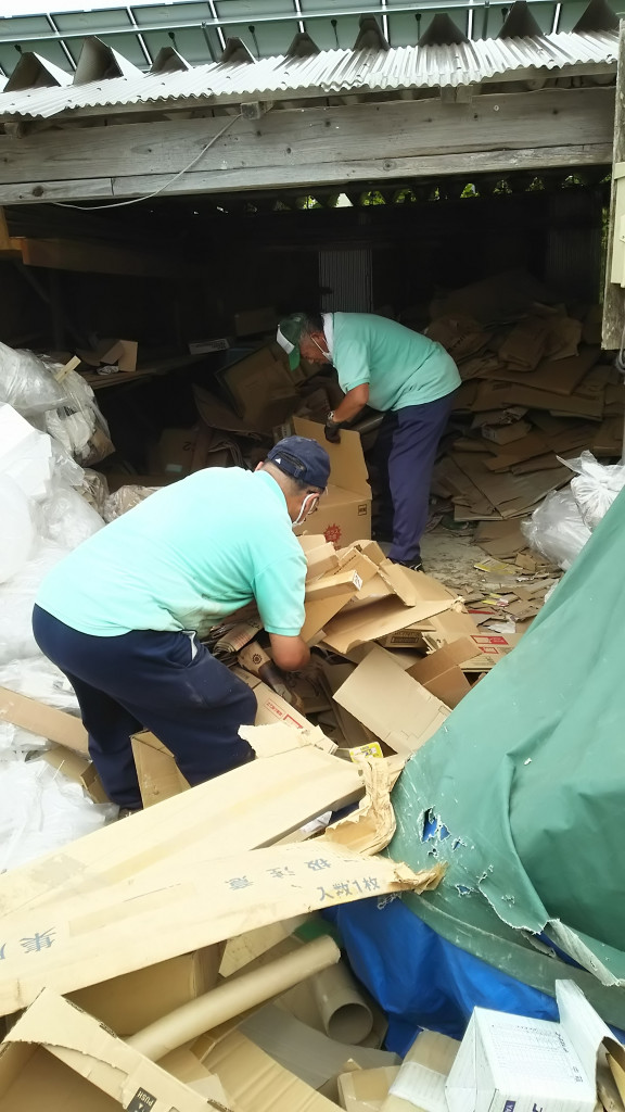 連休中ということもあり、従業員の方はいらっしゃらなかったですが、連休明けにかなり片付いた段ボールを見て安心してもらえれば何よりです。建設関係の現場の段ボールでおが屑にまみれながらでしたが、TさんKさんチーム、お疲れさまでした!