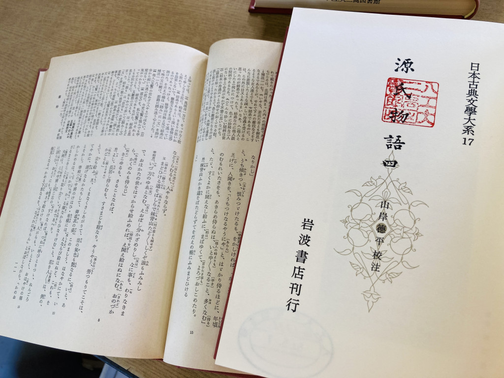 ※こちらは「ふわふわ言葉」とは関係ないのですが、『源氏物語』の全集です。先日の作業で回収してきた資源物の中に入っていました。大学で古典の文法を勉強していたので、懐かしくてついながめてしまいました。