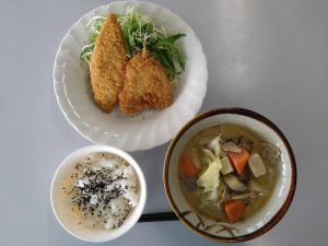 〇アジフライ・白身フライ(キャベツ京菜添え)