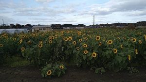 この前の休日、家族と下田に行く時ひまわりを見ました。