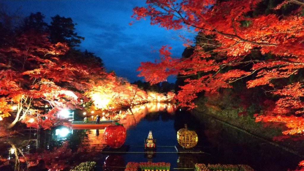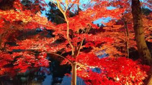 歩き始めは薄暗かったのですが、徐々にライトアップされ、紅葉が水面に反射して幻想的な状態に!ウォーキングのご褒美か!思わず景色に見とれて写真を撮り、ウォーキングになったかどうか怪しいです。(;^ω^)