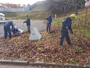 朝晩の冷え込みが激しいですね、そんな中でも精一杯頑張って落ち葉清掃作業に取り組んでいる利用者さん達😓