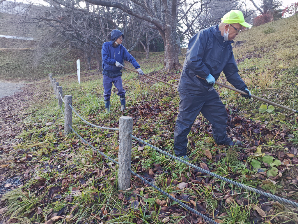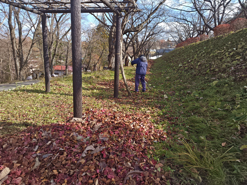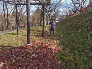 [蟹沢水道公園、落ち葉清掃]