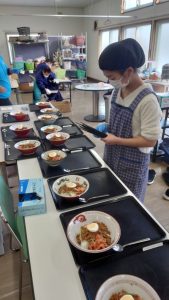 色んな事を体験しているのですが、今日は先日厨房作業からホワイトハウスでの盛り付け、配膳を体験していたSさんの様子をお伝えします。