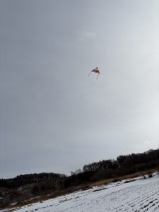 先週末、学童クラブで長男が作成し、持ち帰ってきたので凧あげをしました。