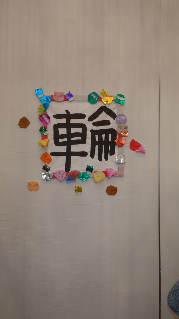 そんな中、各事業所から作品展示がありました。リヴェールからも「輪」という書道の作品が展示されました。
