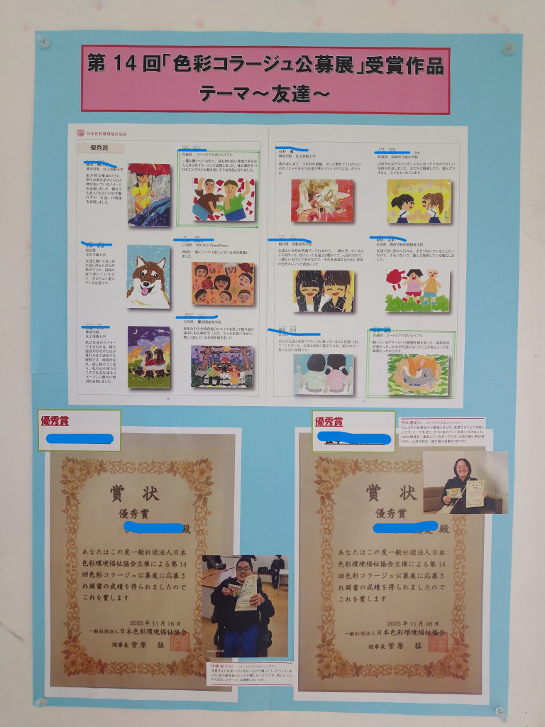 今回の色彩コラージュ公募展のテーマは「友達」でした。受賞作品はもちろんのこと、惜しくも賞は受賞しなかった方も「友達」というテーマのもと、思い思いの気持ちを作品に込めた素晴らしい作品となりました。そんな皆さんにステキで賞を受賞したいと思います。