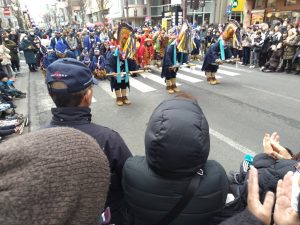 中心街をそれぞれのえんぶり組が披露する摺りは圧巻!!お囃子の音に威勢のよい掛け声、かわいらしい子供たちの祝福芸もあり寒さを忘れる程、心が躍りました。