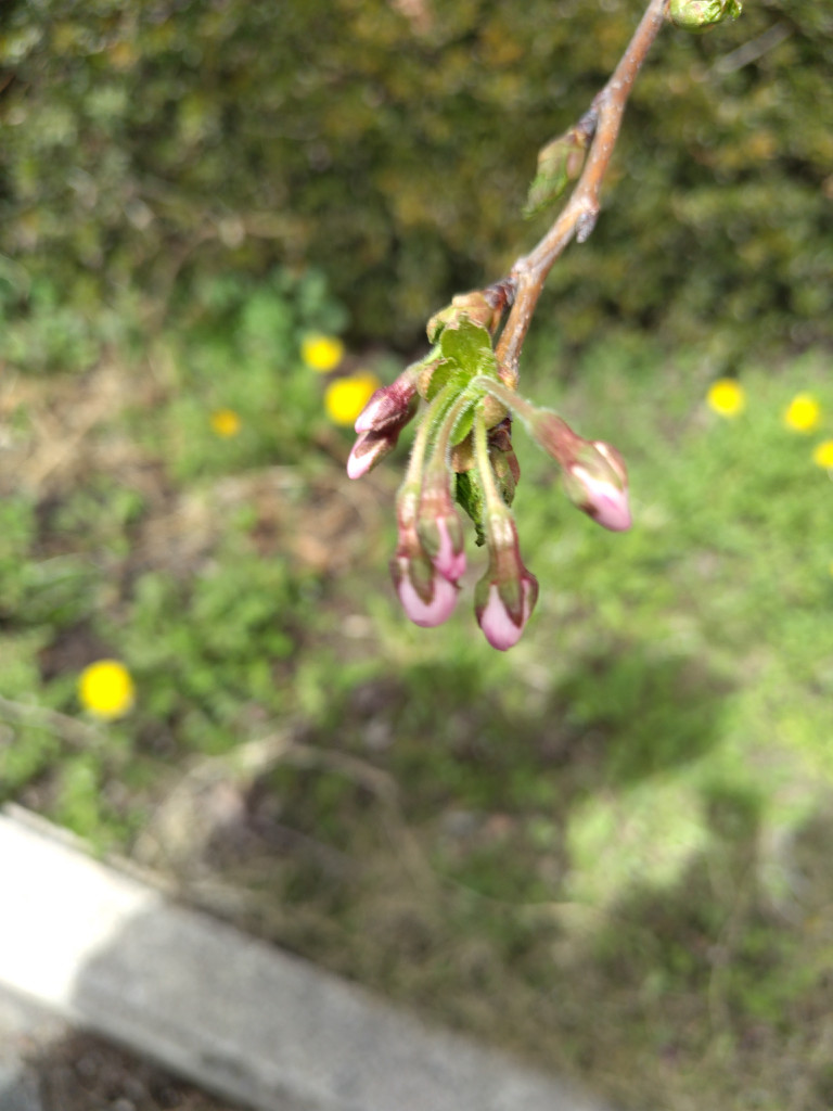 皆さん、こんにちは。ジョイフルのキャノンです。昨日(4/9)はとってもいい天気でしたね!本日は打って変わっての雨交じりの天気…。利用者Yさんとの日課の散歩も今日はたっぷりと歩くことが出来ず、施設周辺を少し歩くだけとなってしまいました。なんだか物足りなさそうなYさん。桜の開花を心待ちにしているキャノンにとっても散歩コースにある桜の様子が気になっています。