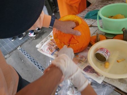 こんなにあるかぼちゃの中から好きな形を一つ選んでランタン作りを体験しました。