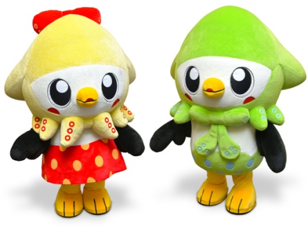 黄色が「こうみちゃん」、緑色が「こかぶくん」だそうです。昨年来てくれたのはこの二人でした。