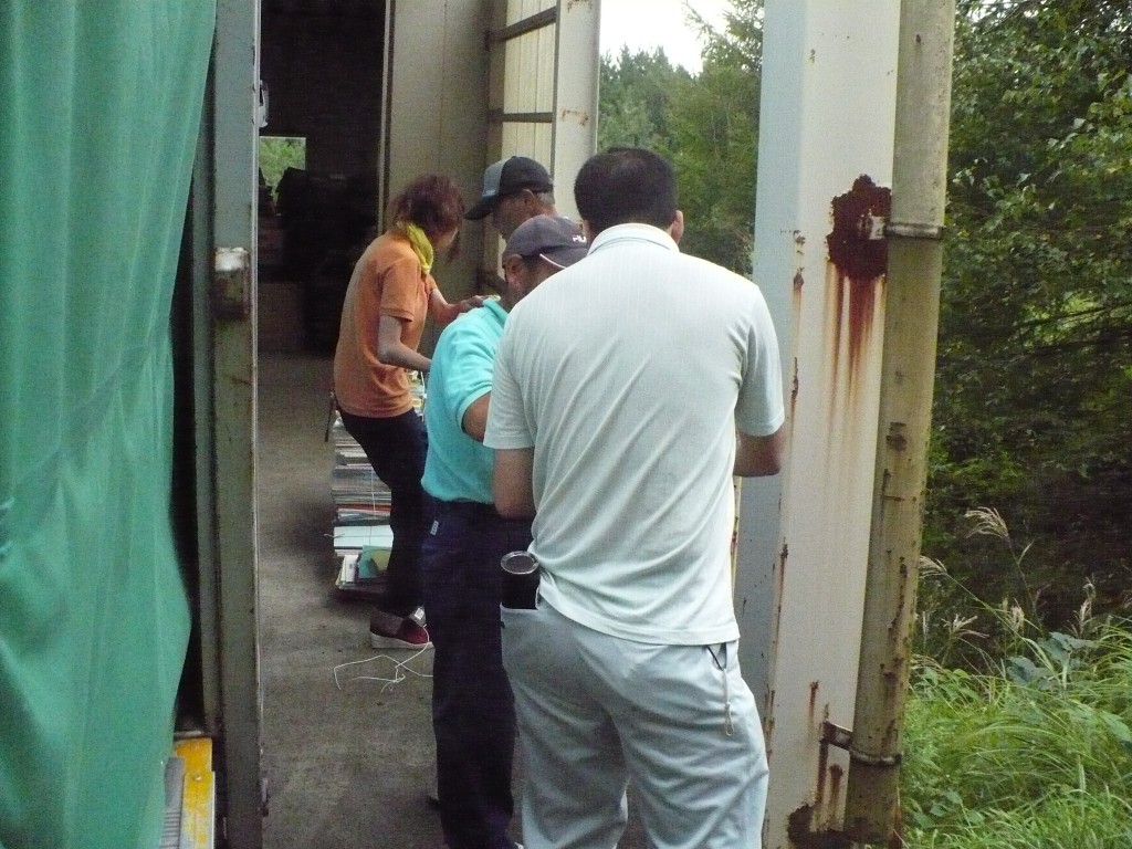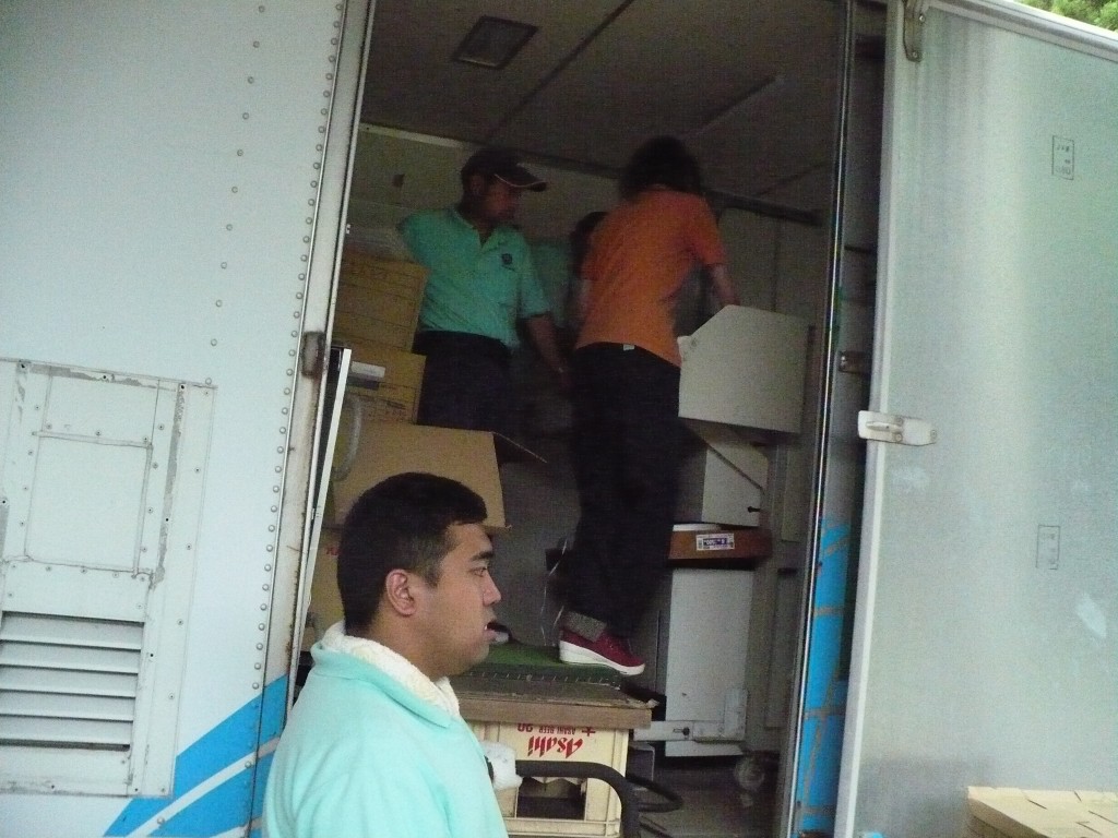 書類をトラックに運んでいるところ