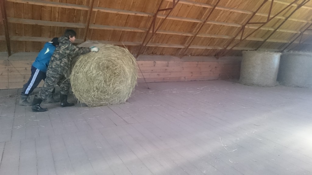 にんにく掘り取り作業              わら運搬作業