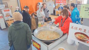 イートインコーナーでリヴェール産の美保野高原野菜を使った豊年汁が大好評!