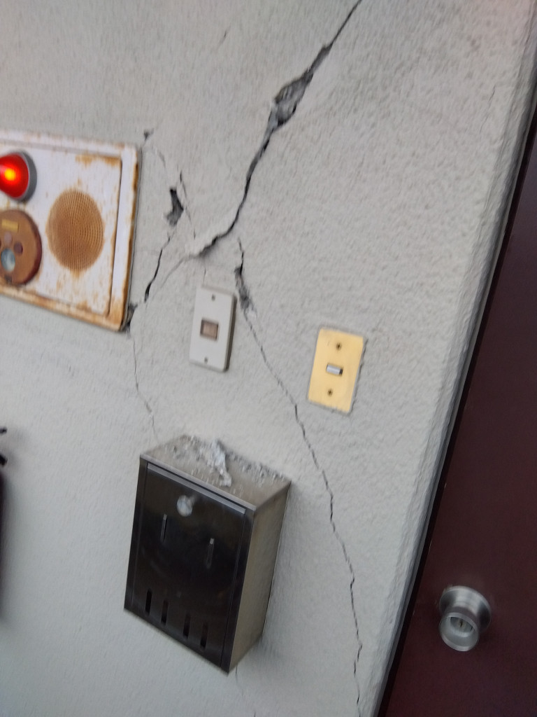 足元にはがれきが散乱しています。このためドアが固くなって開かなかったのでした。