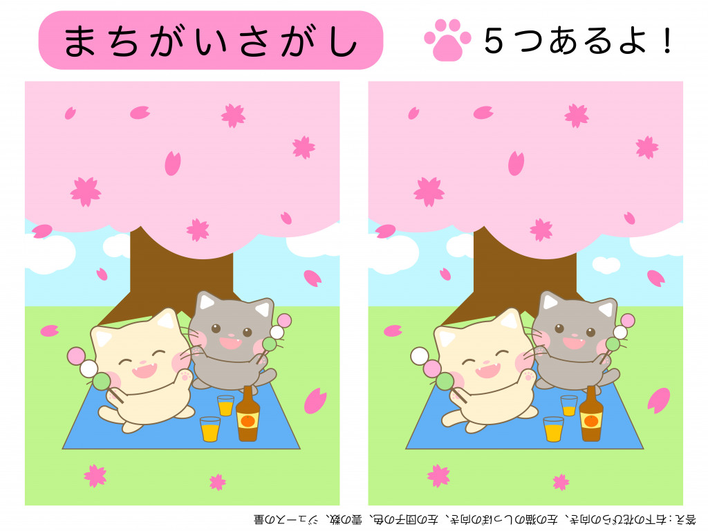 まちがいさがしは、簡単なようで難しく、まちがいを見つけられないと数日間も時間をかけてしまうものもあります。まちがいを見つけられない時には、絵を縦にしたり、横にしたり線をひいたり、じっくり観察していると、些細な変化や違和感に気がつきます。