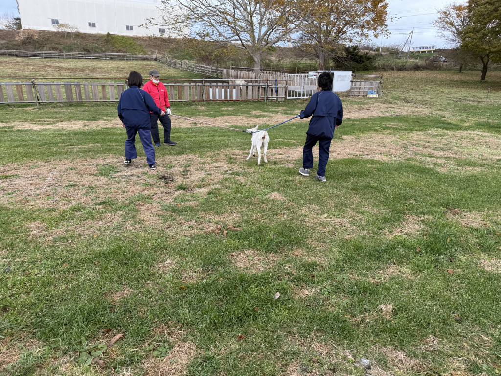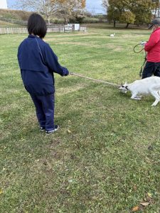 リードを離さないようにと話すもSさんは少し怖いようで離してしまうことも。