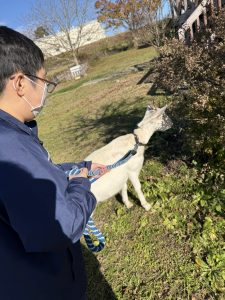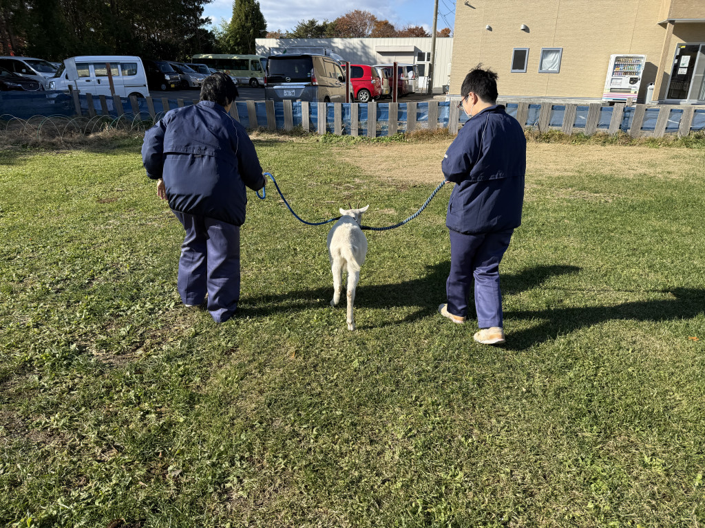 以前Hさんとヤギの散歩をスタッフと一緒に行いました。