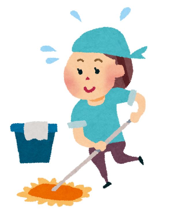 テーブルやいす、動かせるものを全て除いて床の汚れを落としました。