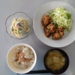 12/11 〇油淋鶏(鶏肉・ねぎ)・キャベツ・京菜 スパゲティサラダ(ハム・きゅうり・人参 レタス・玉ねぎ) 味噌汁(麩・油揚げ・ねぎ) ご飯 <油淋鶏と唐揚げのちがい> 油淋鶏は揚げた鶏に刻みねぎと甘酸っぱいタレ をか […]
